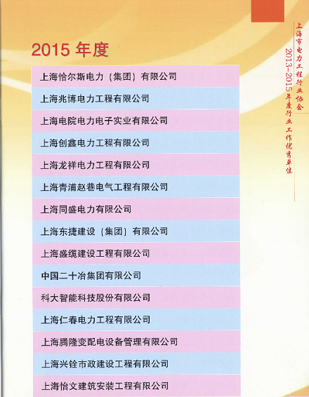 行业工作优秀单位是根据各会员单位参与协会会议、行业调研、行业培训、主题活动、协会支持、信息投稿等协会无差别活动的统计数据进行评选。每项指标对应各单位的参与情况评分,选取综合排名前15名的优秀单位。经评选,上海电院电力电子实业有限公司等15家单位荣获 “2015年度行业工作优秀单位”称号。这不仅仅是协会对于公司2015年工作的肯定,更代表着整个电力行业对于公司的肯定!