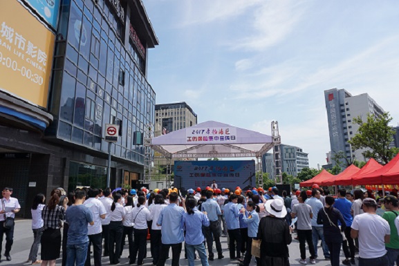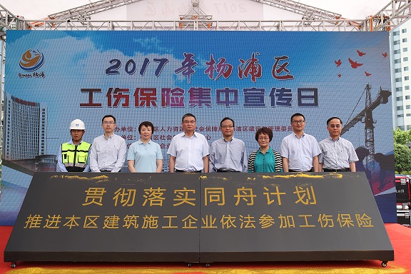 6月15日上午,以“贯彻落实‘同舟计划’ 推进本区建筑施工企业依法参加工伤保险”为主题的2017年杨浦区工伤保险集中宣传日活动在复旦软件园外广场举行。今年的宣传日活动由区人社局、区建管委联合主办,区社会保障服务中心承办,区企联、复旦软件园协办。区委组织部副部长,区人社局党委书记、局长,区公务员局局长李金刚,市人社局工伤福利保险处处长张骁、副处长何韻华、王铮宇,区建筑业管理事务中心主任徐明,区企联会会长应彭华,区复旦软件园总经理杨秋萍等领导出席活动。区内建筑企业代表、建筑工地职工代表、经济园区企业、职工,广大市民约300余人次参与了当天的宣传咨询活动。