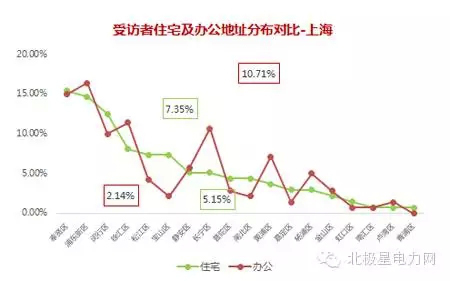 调研结果指出,长宁区的住宅地址人数均值明显低于办公地址,充电桩的建设重点应以商业区特点为主要考虑;宝山区的住宅地址人数均值明显高于办公地址,充电桩的建设重点应以住宅区特点为主要考虑;其他城区的人数流动则相对比较均衡。